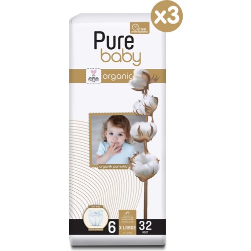 Pure Baby Organik Pamuklu Cırtlı Bez 3’lü Paket 6 Numara Xlarge 96 Adet