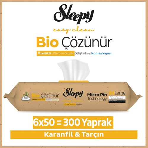 Sleepy Easy Clean Bio Çözünür Karanfil ve Tarçın Yüzey Temizlik Havlusu 6X50 (300 Yaprak)