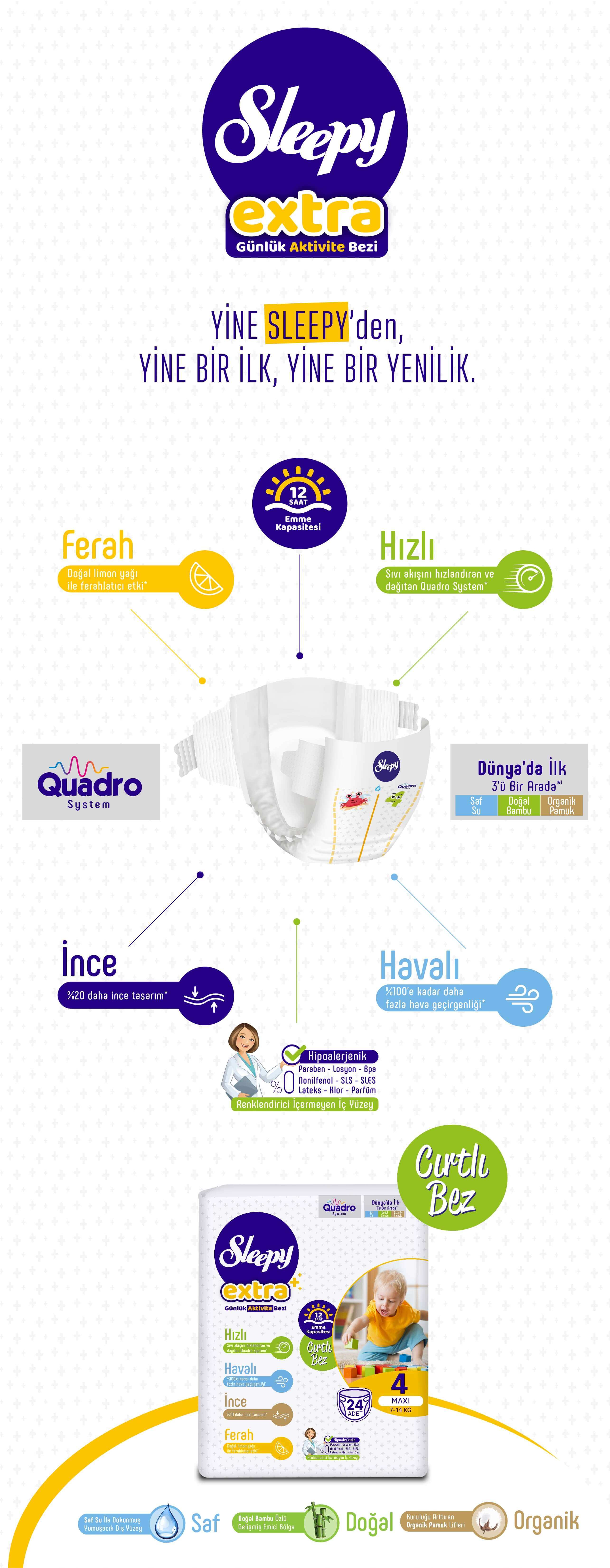 Sleepy Extra Avantajlı Bebek Bezi 4 Numara Maxi 96 Adet